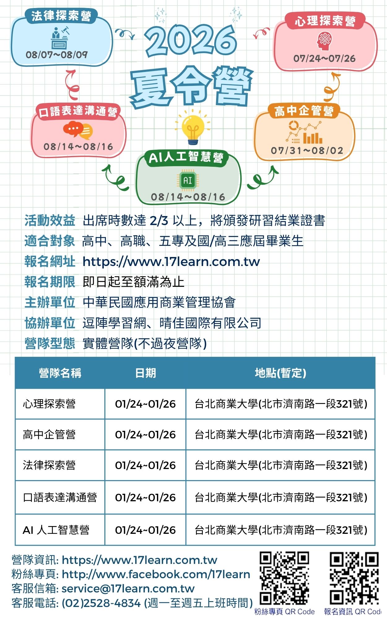 | 公告主旨 | 國立中央大學臺灣太空科學聯盟辦理「2026 臺灣太空科學聯盟中學生日」,歡迎有興趣的同學報名參加。 |