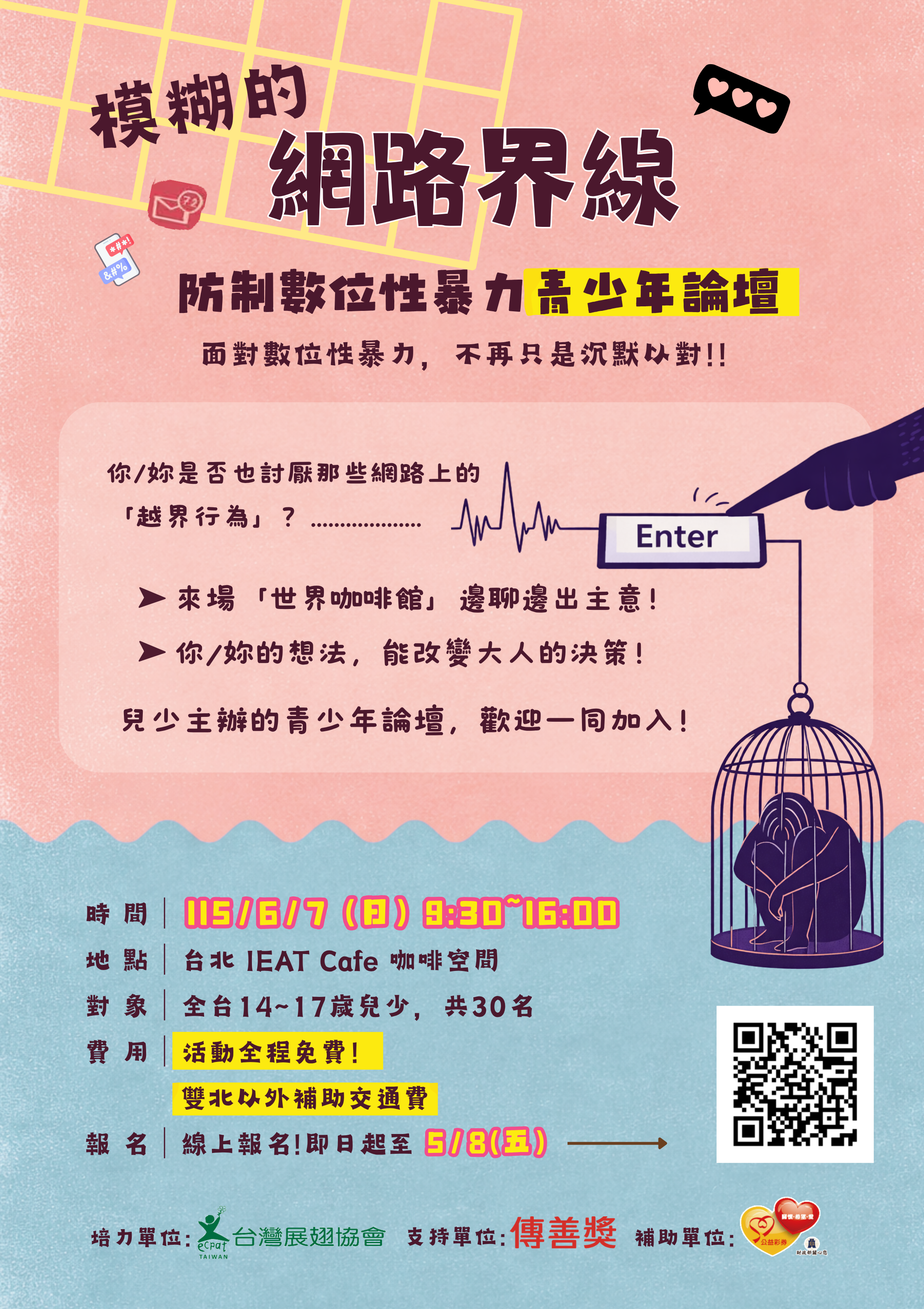 | 公告主旨 | 轉知台灣展翅協會「模糊的網路界線:防制數位性暴力青少年論壇」報名簡章,鼓勵學生踴躍參與。 |
