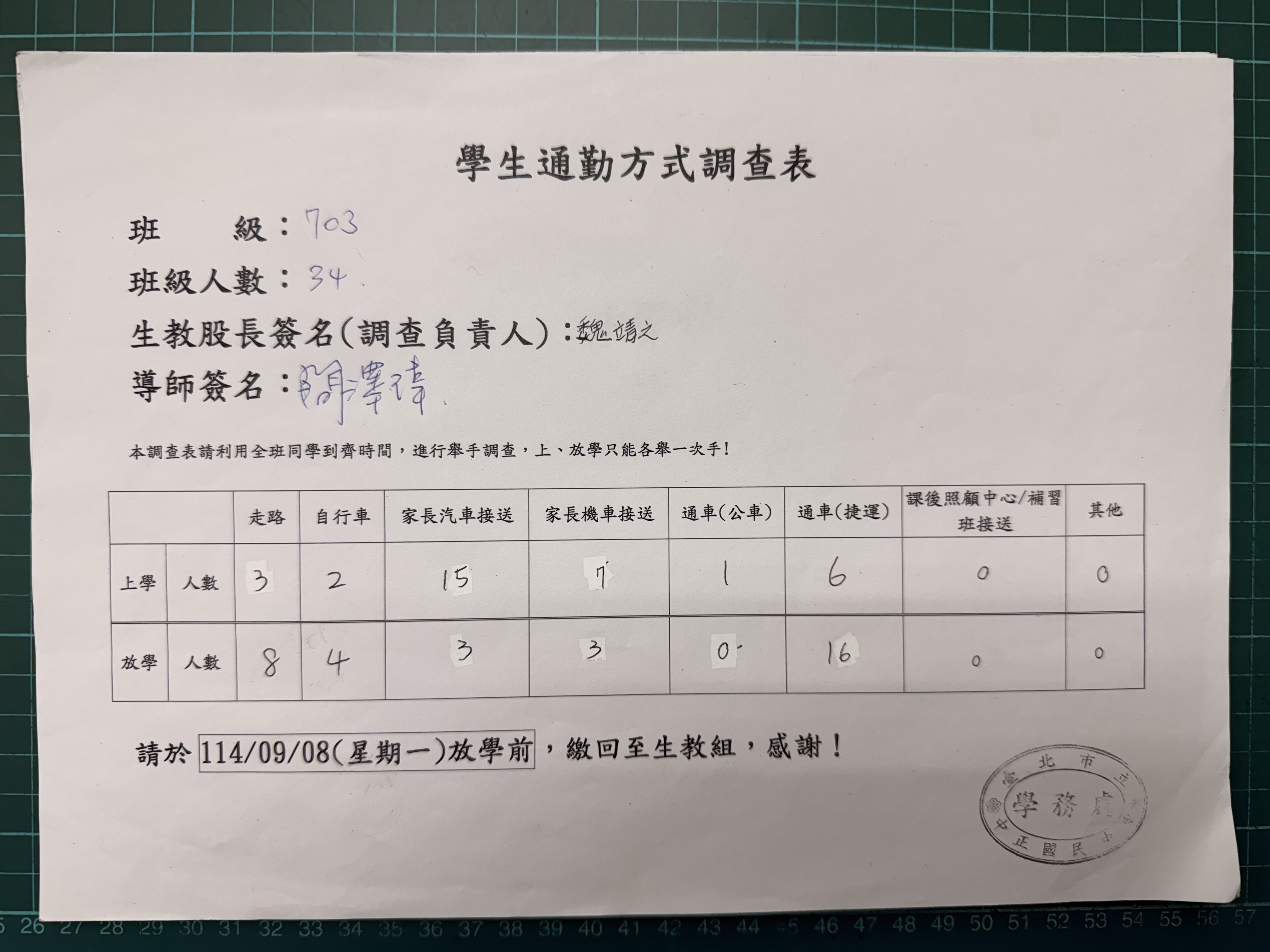 交通安全與輔導 7、建制學生通學資料與運用,並設置路隊及短期補習班接送規劃。 8、規劃校園進出之人車動線、交通工具停放、交通管制計畫。 人車入校動線 人車入校動線 檔案名稱檔案大小檔案格式下載人車入校動線.pdf550.85 KB新視窗開啟檔案 人車入校動線.pdf 學校交通地圖 學校交通地圖 檔案名稱檔案大小檔案格式下載學校交通地圖.pdf692.71 KB新視窗開啟檔案 學校交通地圖.pdf 9、交通服務及導護的規劃與管理。 臺北市立中正國民中學導護工作實施要點 臺北市立中正國民中學導護工作實施要點 檔案名稱檔案大小檔案格式下載臺北市立中正國民中學導護工作實施要點.pdf70.17 KB新視窗開啟檔案 臺北市立中正國民中學導護工作實施要點.pdf 導護志工簽到表 導護志工簽到表 檔案名稱檔案大小檔案格式下載導護志工簽到表.pdf241.19 KB新視窗開啟檔案 導護志工簽到表.pdf 10、針對學生違規、交通事故作統計,並實施輔導作為。 學校周遭交通事故統計 學校周遭交通事故統計 檔案名稱檔案大小檔案格式下載學校周遭交通事故統計.pdf135.80 KB新視窗開啟檔案 學校周遭交通事故統計.pdf 11、規劃家長接送區與愛心服務站,且能鼓勵學生步行。 愛心服務站 愛心服務站 檔案名稱檔案大小檔案格式下載愛心服務站.pdf332.72 KB新視窗開啟檔案 愛心服務站.pdf Top 教師登入 帳號: 密碼: